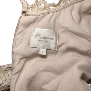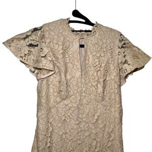 Soshanna Anthropologie Midnight Ruffled Sleeve High Low Lace Maxi Dress Tan Ivory Size 4