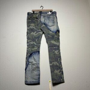 Sosoo Designer Camo Patched Streetwear Denim Jeans Pants Men 38 Patched Slim Fit