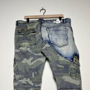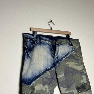 camo patched design, streetwear slim fit, men’s 38, good condition