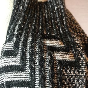 Sostanza L cardigan /geometric knit pattern /black and gray /buttons down front