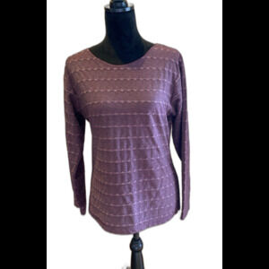 Sostanza Top Size Medium Knit Blouse Dk Purple Pullover Textured Pattern Stretch