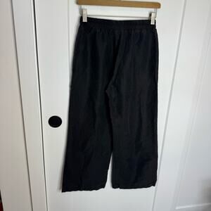Sotela Black Linen Blend Elastic Pull On Wide Leg Crop Pants Lagenlook Size 0