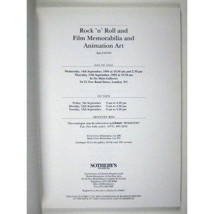 Sotheby's Catalog 1994 September London Rock 'n Roll Film Memorabilia Animation