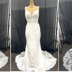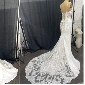 Disclosure: Gown will have traces of wear in the under-hem (inside bottom hem of the gown) from being modeled. This inner part naturally drags on the floor when worn (This will NOT be noticeable when you wear it) View pics for reference.