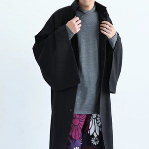 “Shusei” overlapping cowl neck collar sweater is ideal for layering under our vests and jackets for extra warmth.