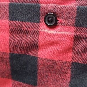 Souactimuy Red Plaid Flannel Hoodie Shacket Pocket Long Sleeve Button Down SZ XL