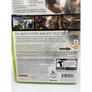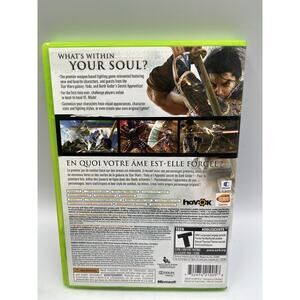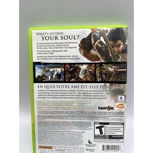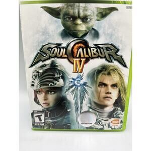 The product is Soul Calibur IV for the Microsoft Xbox 360, released in 2008. It is part of the popular Soul Calibur series, known for its fighting gameplay. The game is rated T-Teen and includes the manual, making it a complete-in-box (CIB) package for fans of the genre. Published by Microsoft, this title offers an immersive experience with its dynamic gameplay and engaging storyline, enhancing the gaming experience for players looking for fast-paced action and strategic combat.