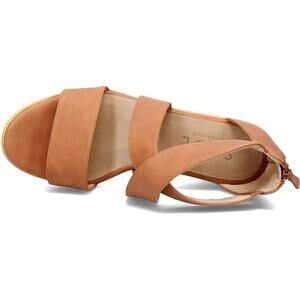 The Soul Naturalizer Women's Goodtimes Ankle Strap Wedge Sandals in Toffee, Size 10M, are versatile and stylish sandals perfect for various occasions. With a solid pattern and stitching accents, these sandals feature a zip closure, synthetic lining, and a lightweight synthetic outsole for comfort and breathability. The wedge heel provides a trendy and stable look, while the cushioned insole offers added comfort for all-day wear. Ideal for summer and spring, these strappy sandals are a fashionable and practical choice for any woman on the go.