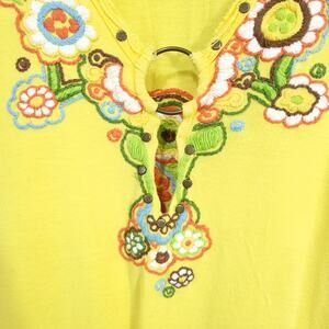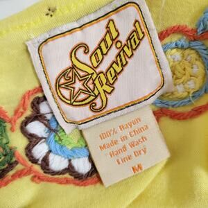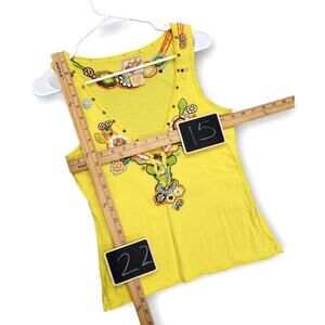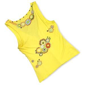 Soul Revival Tank Top Womens Medium Yellow Embroidered Floral Festival Summer