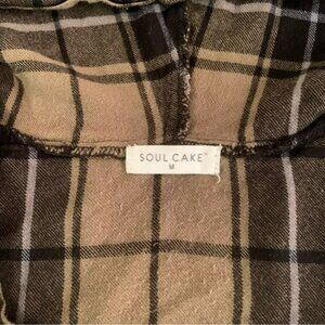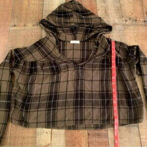 Soul cake womens size medium cropped brown and tan plaid long sleeve hooded top