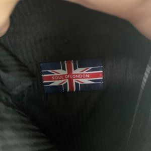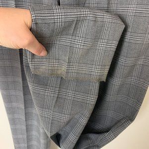 Soul of London gray plaid dress pants in size 31 regular. Flat front design. New without tags. Released raw hem to customize inseam. Some dirt on bottom of pant hem