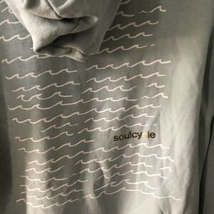 SoulCycle Hoodie Pullover OVERSIZED Sweatshirt Light Green Kangaroo Pouch Crossed Neck Skull White Wave Back with Gold “Soul Cycle”