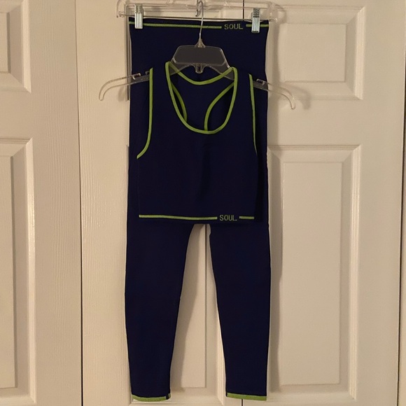 This matching set of leggings and sports bra are designed for optimal performance with a snug fit that supports your movements. Ribbed texture on both.