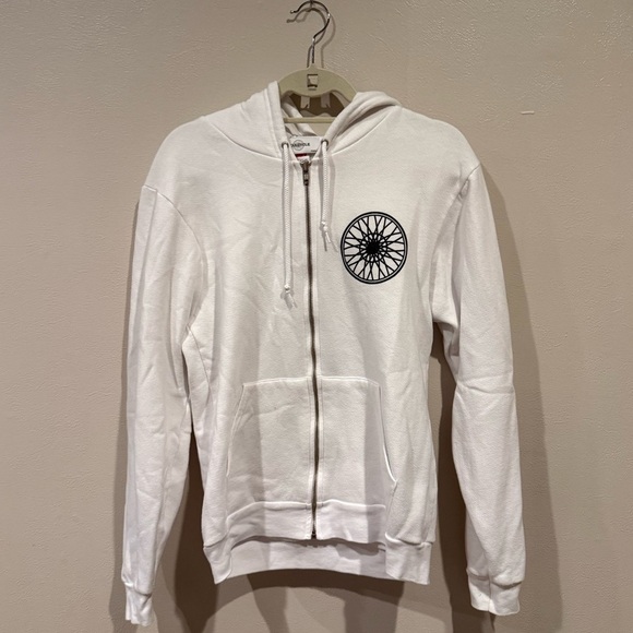 White hoodie with a bold black SoulCycle logo. Ideal for workouts or casual outings.