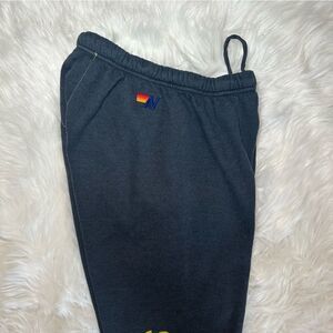 SoulCycle X Aviator Nation Sweats. Mark on back left as shown in photo. Minor pilling. Color is like a dark grey/blue.