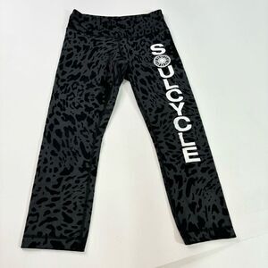 Soulcycle Leggings Womens 4 Black & Gray Leopard Print Mid-Rise Straight-Leg Act