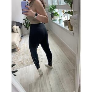 Soulcycle SOUL Black Grommet Leggings Size Medium. Excellent condition, like new. Solid black with silver grommet hardware detailing on lower legs. Full pant length. High rise high waisted. Moisture wicking technical workout material.