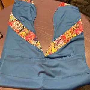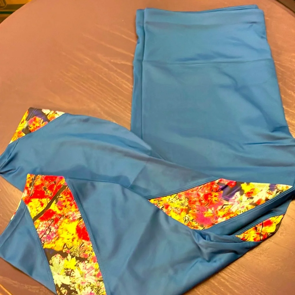 Soulgani active yoga pants new in poly bag teal blue with floral inserts 1XP