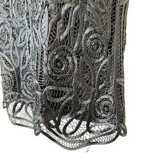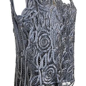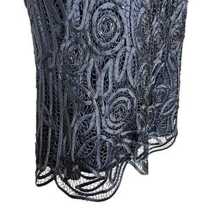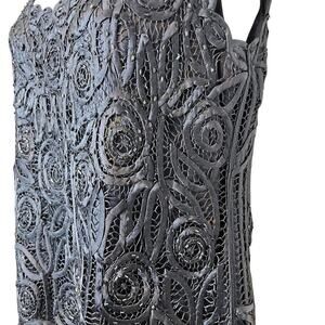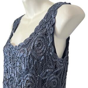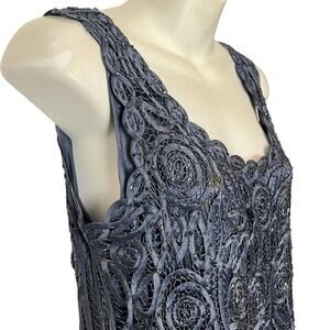 Soulmates Silk Whimsigoth Beaded Crochet Sleeveless Top Soutache Navy Satin sz S