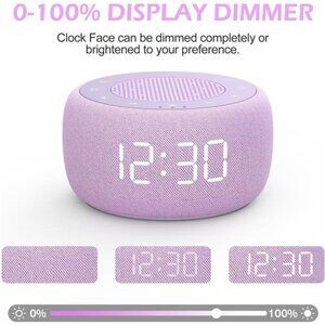 Sound Machine & Alarm Clock 2-in-1, 0-100% Clock Face Brightness, Bottom Colored