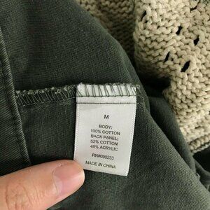 Body: 100% Cotton; Back Panel: 52% Cotton, 48% Acrylic