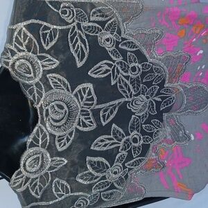 Sound & Matter sz M tank top grey w silver lace back scoop neck sleeveless knit