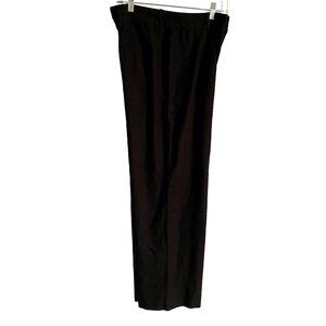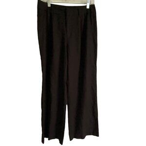 These Sound Style black linen blend pants in size 8 offer a chic, comfortable fit with a zipper closure. Made from 55% linen and 45% rayon, they feature faux back pockets for added style. Approximate measurements laying flat 15" waist, 30" inseam, 12" leg openings.