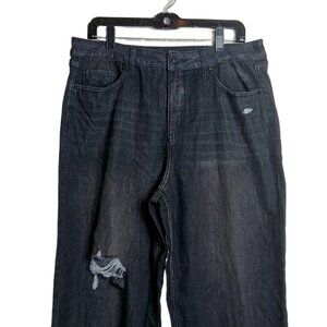 Sound/Style Susan Wide Leg Jeans Women’s 14 Black Distressed Super High Rise Raw