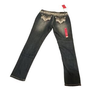 Soundgirl Jeans Skinny Girls Size 16 Dark Blue Bling Embellished Angel Wings New