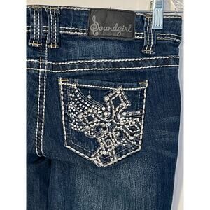 Soundgirl Jeans Womens Size 28" Waist Dark Blue Boot Cut Embroidered Low Rise