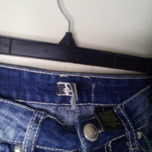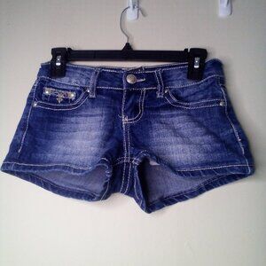 Soundgirl Shorts Juniors 1 Button Pockets Embroidery Rhinestones Denim Blue
