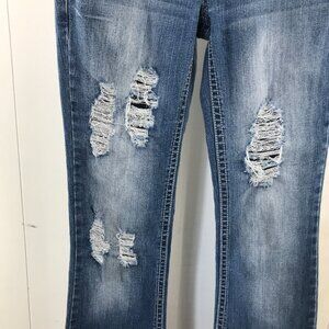 Soundgirl lace studded back pocket denim distressed bootcut jeans size 3