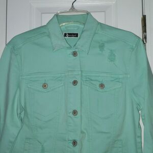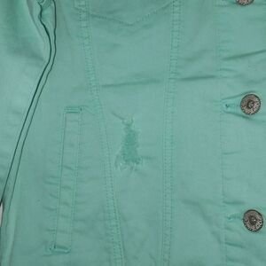 There are distressed holes on front upper side and lower other side and one sleeve and then other distressed