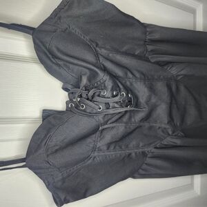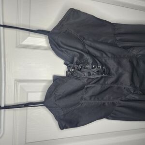 Source Unknown Black Babydoll Dress with Ruched Ribbed Design