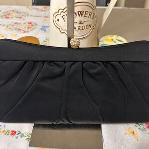 Chic black clutch with elegant gold clasp. Perfect for evening events.