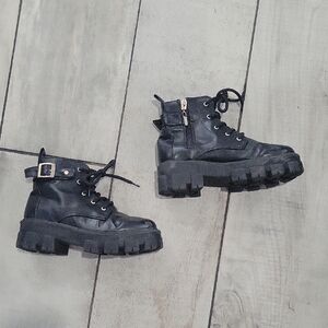 Stylish black boots for kids. Durable and comfortable. Perfect for everyday wear.zipper side for easy on and off