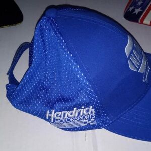 Stylish blue cap with racing logo. Features embroidered details. Perfect for casual wear.