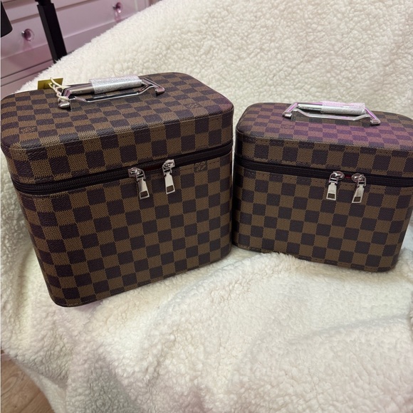 Source Unknown Brown Checkered Luggage Set
