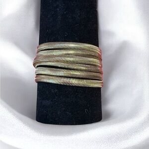 Chic bracelet with gold and silver tones. Perfect for stylish looks.