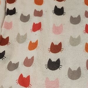 Stylish crew neck sweater. Features multicolor cat pattern. Perfect for casual wear.
