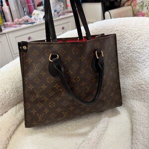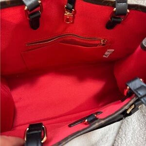 Vibrant tote with multicolor portrait design. Features black handles. Stylish and unique.