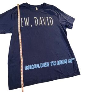 Navy blue tee with 'Ew, David' print. Casual and fun style.