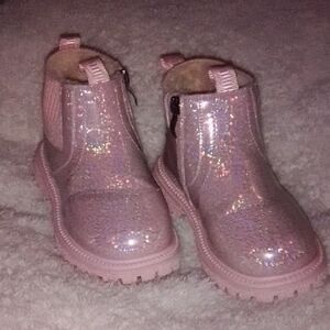 Girls Sparkly pink boots with glitter finish. Cozy and stylish