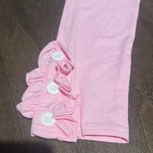 Charming pink leggings with ruffle accents and button details at the ankles.