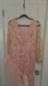 Stunning pink gown with gold sequins. Features a ruffle detail. Ideal for special events.