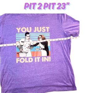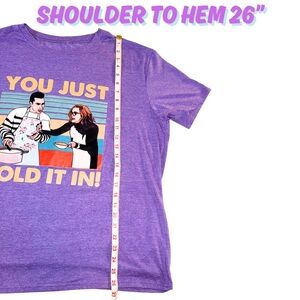 Vibrant purple tee with a fun graphic. Short sleeves. Casual and stylish.