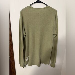 Sage green long sleeve tee. Nautical anchor design in white. Buttoned neckline.