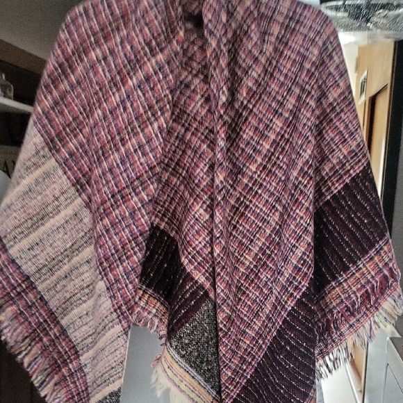 Colorful checkered scarf / shawl with fringe. Ideal for cozy layering.