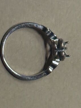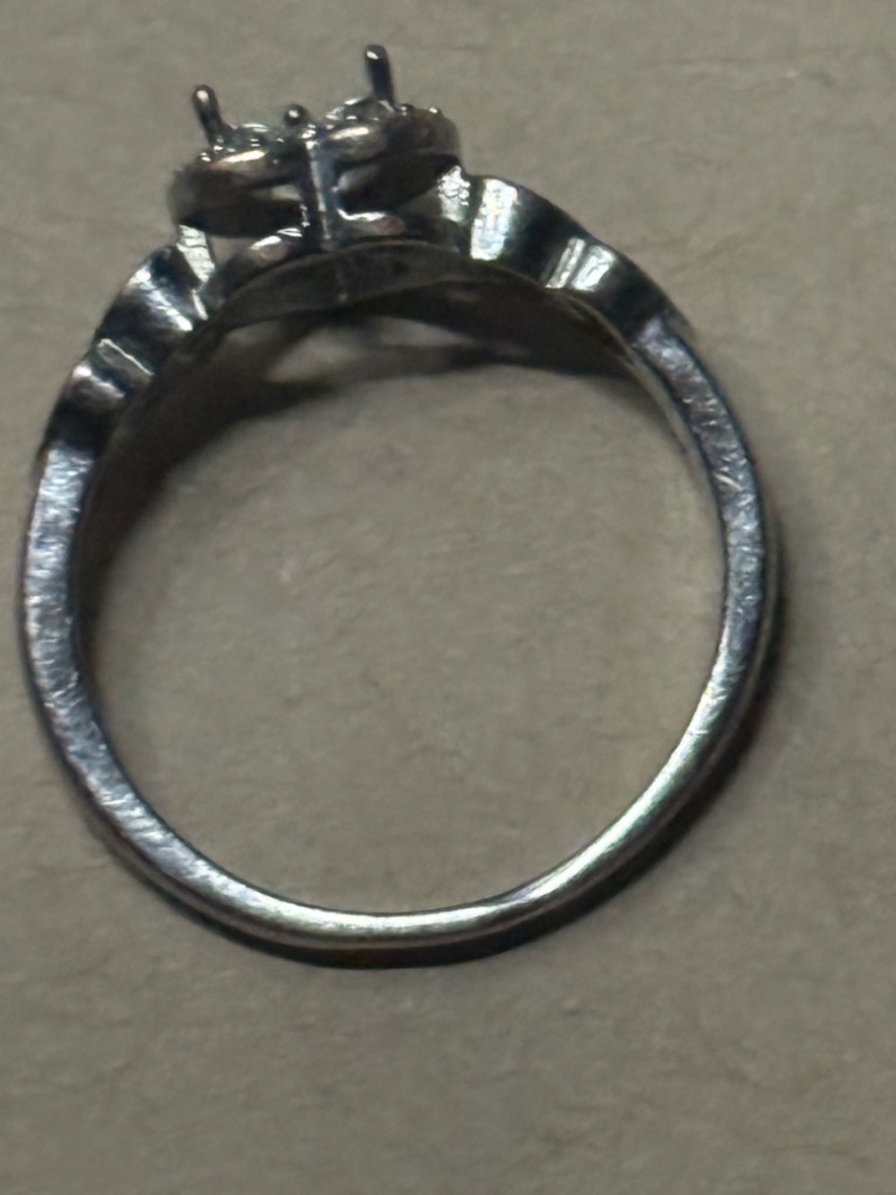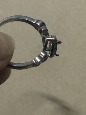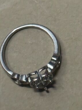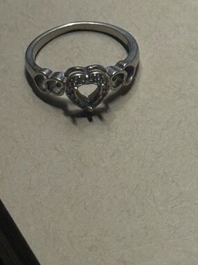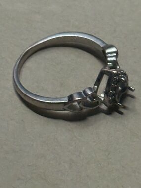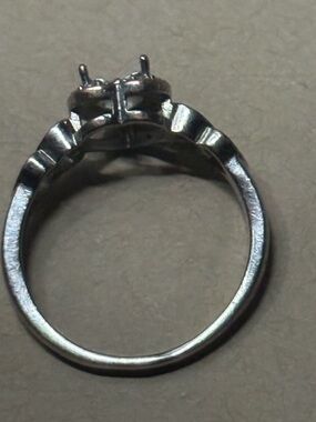 Source unknown solitaire ring setting iElegant prong setting designed to showcase your preferred center stone. Smooth polished band with subtle decorative shoulders for a refined look. Source unknown but appears to be diamonds in the center heart piece.