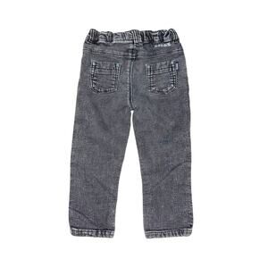 Black straight leg jeans with an adjustable waistband. Car graphic embroidered in blue onto right hip. Jeans are in excellent condition and show no signs of wear. Size: 2-3Y.